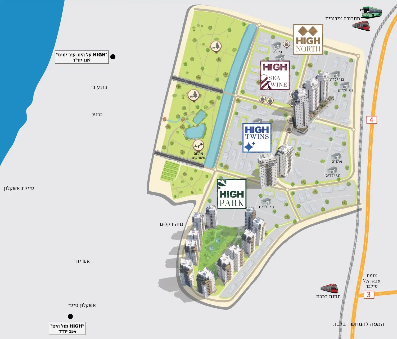 מתחם הפרויקט מונה 11 מבנים המחולקים ל 4 מגדלים בני 11 קומות ו- 7 בניינים בני 9 קומות. מפרט טכני עשיר, מטבח משודרג, ומועדון דיירים בכל בניין. בלב הפרויקט ייבנה פארק ירוק ונעים המהווה ריאה ירוקה, בריכות נוי ומתקני פנאי להנאת דיירי הפרויקט משפחותיהם ואורחיהם.
